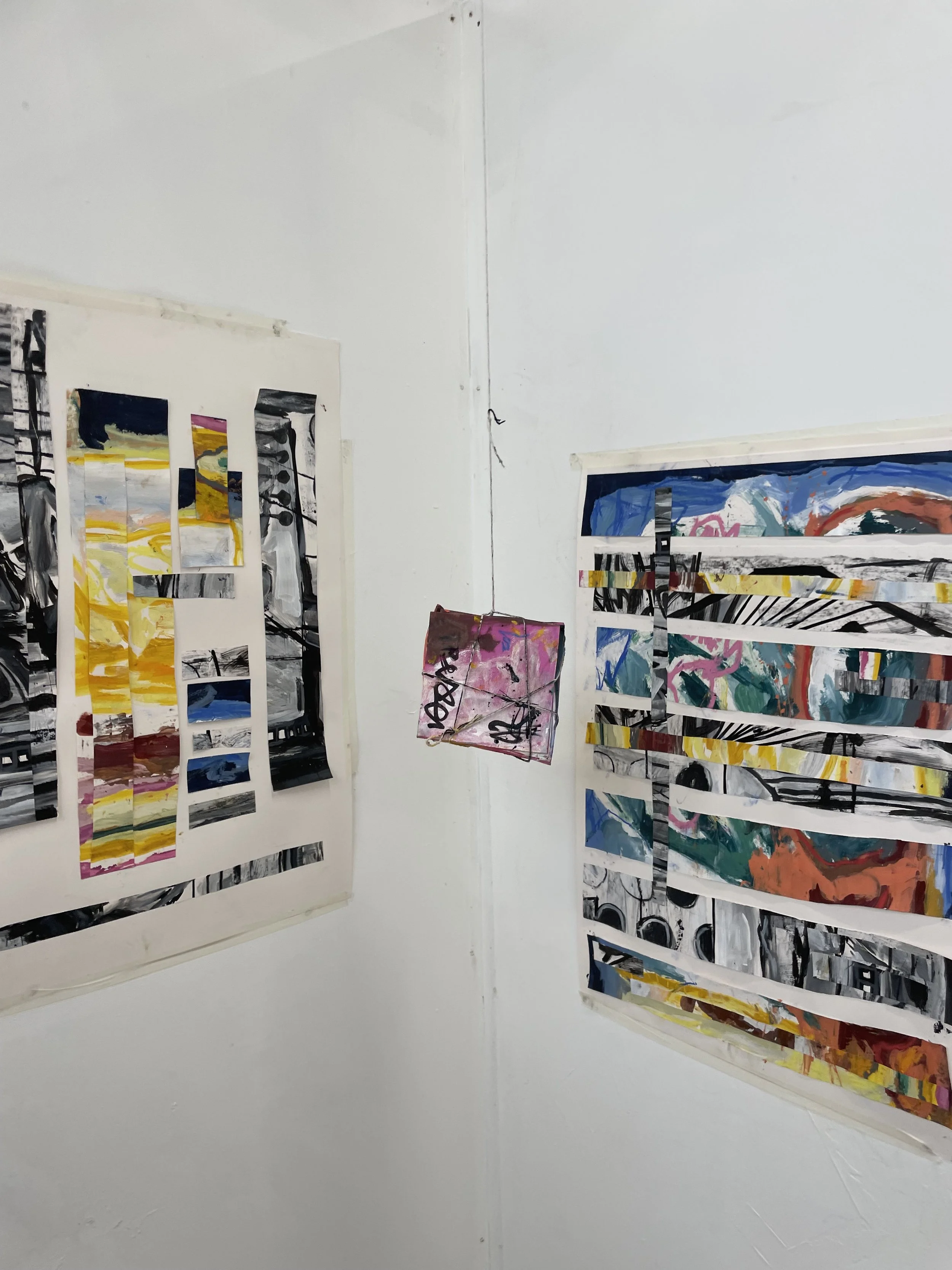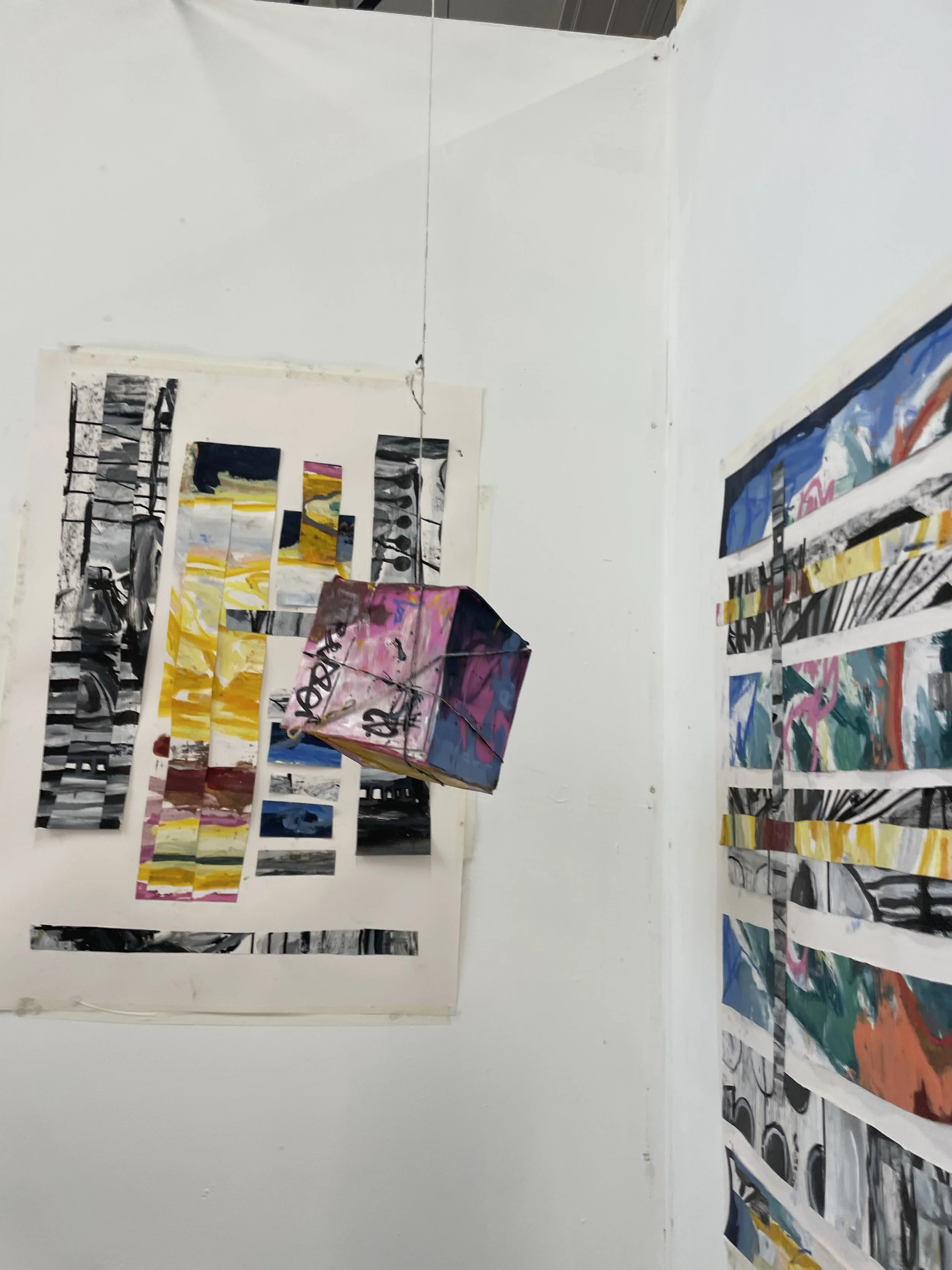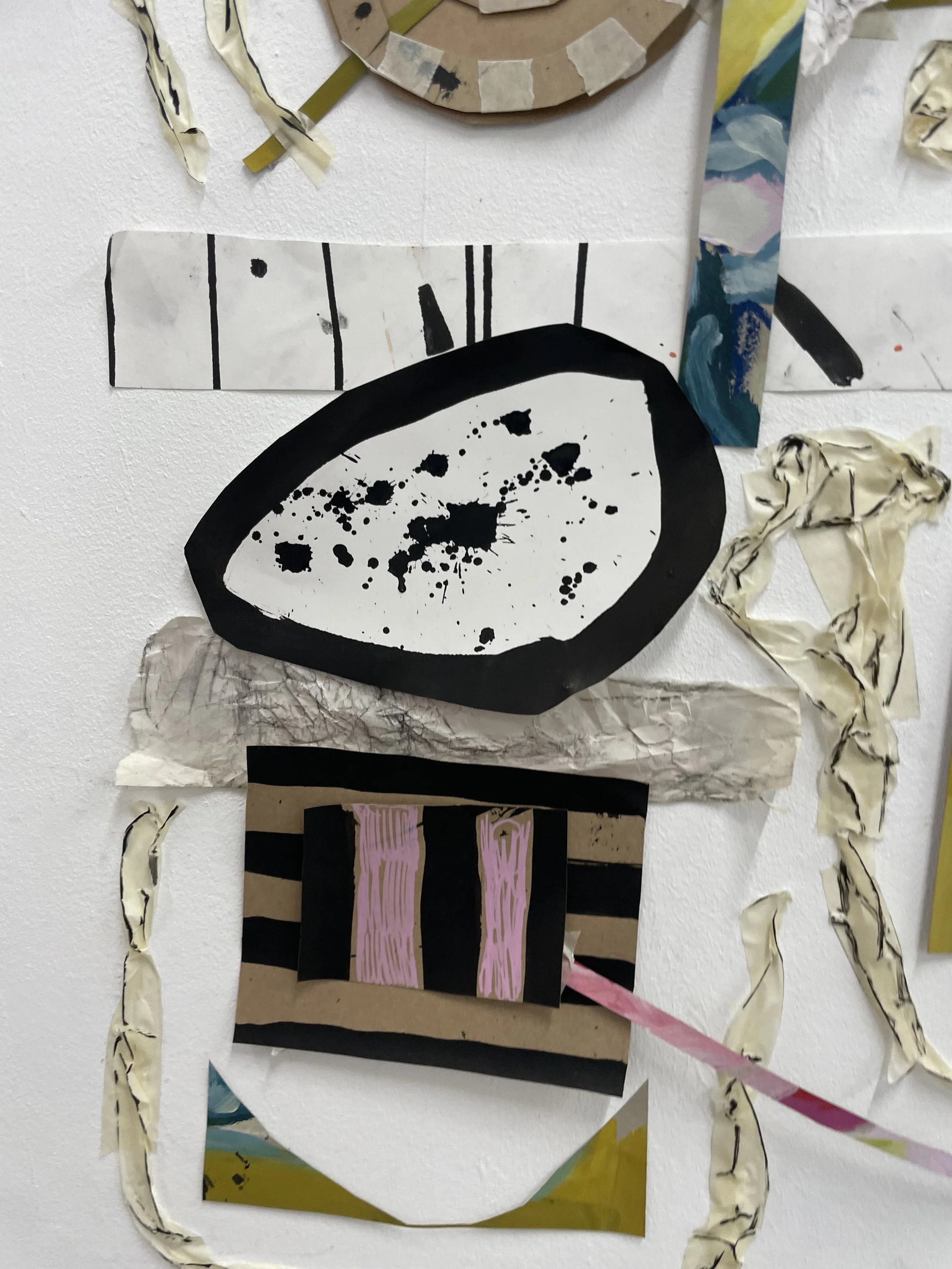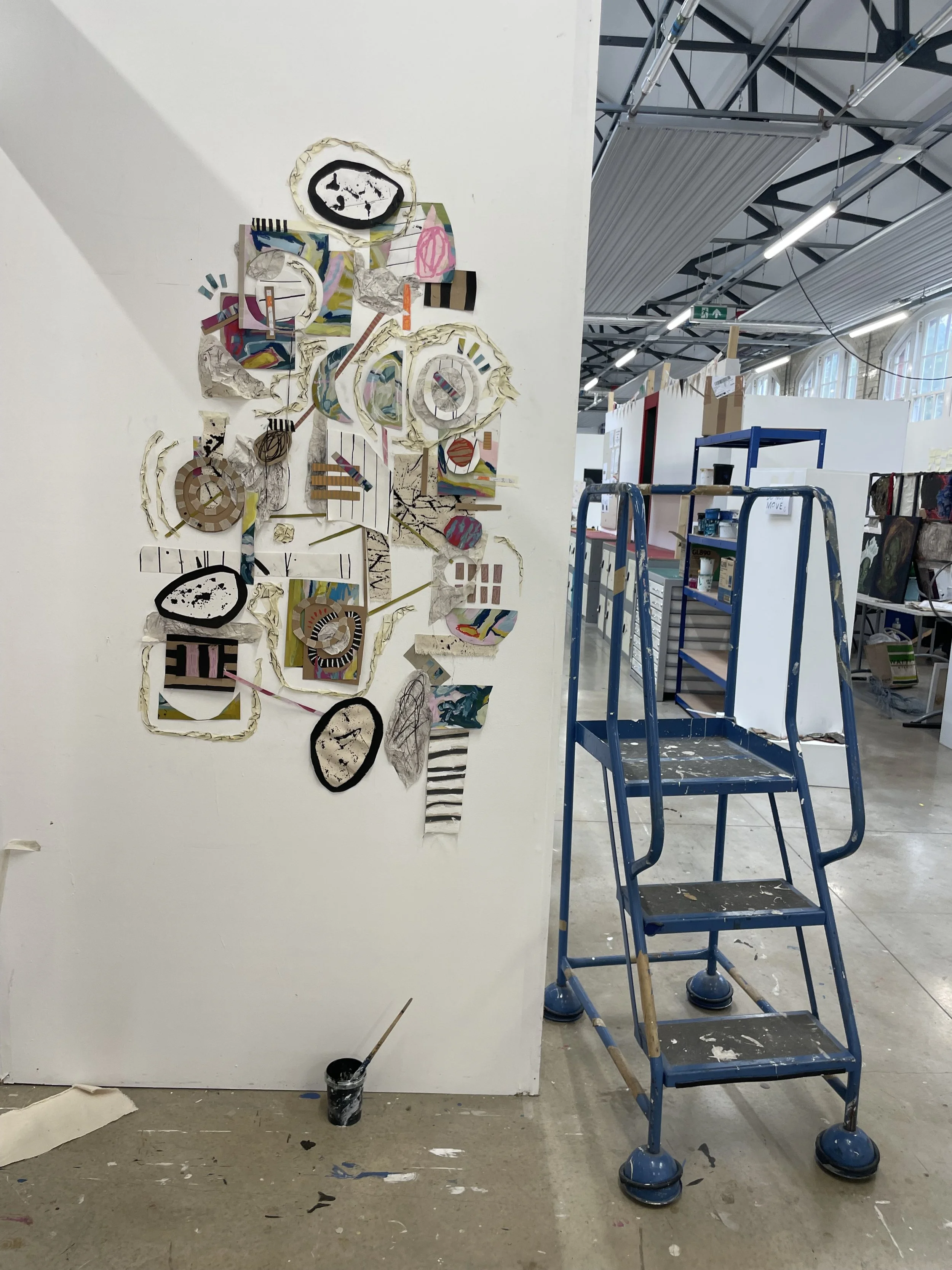 This work emerged as a response to crit feedback around the nature of my studio space its energy, its restlessness, its continual state of becoming. I wanted to push this further, allowing the mark to exist beyond the surface, to physically occupy space.