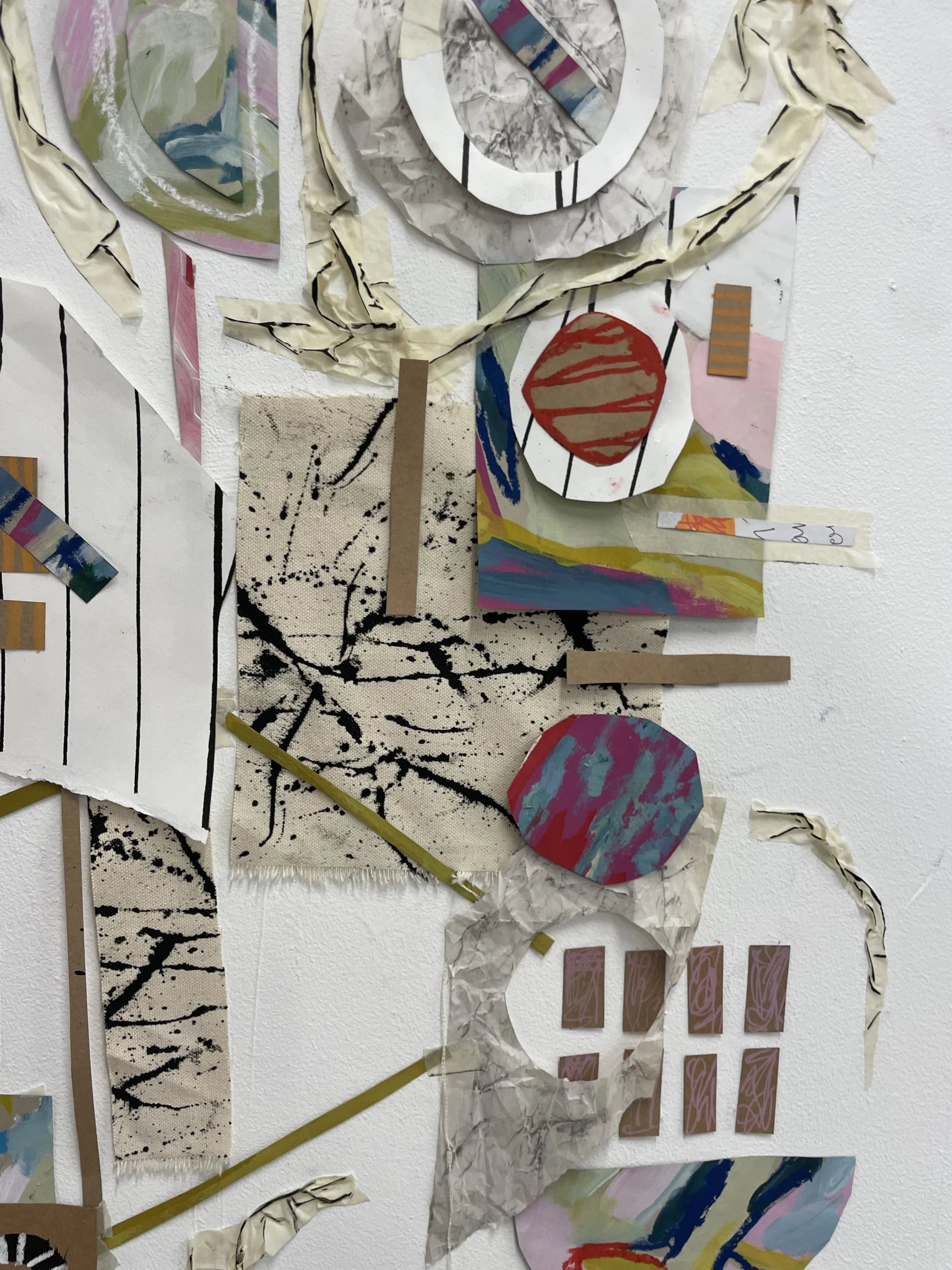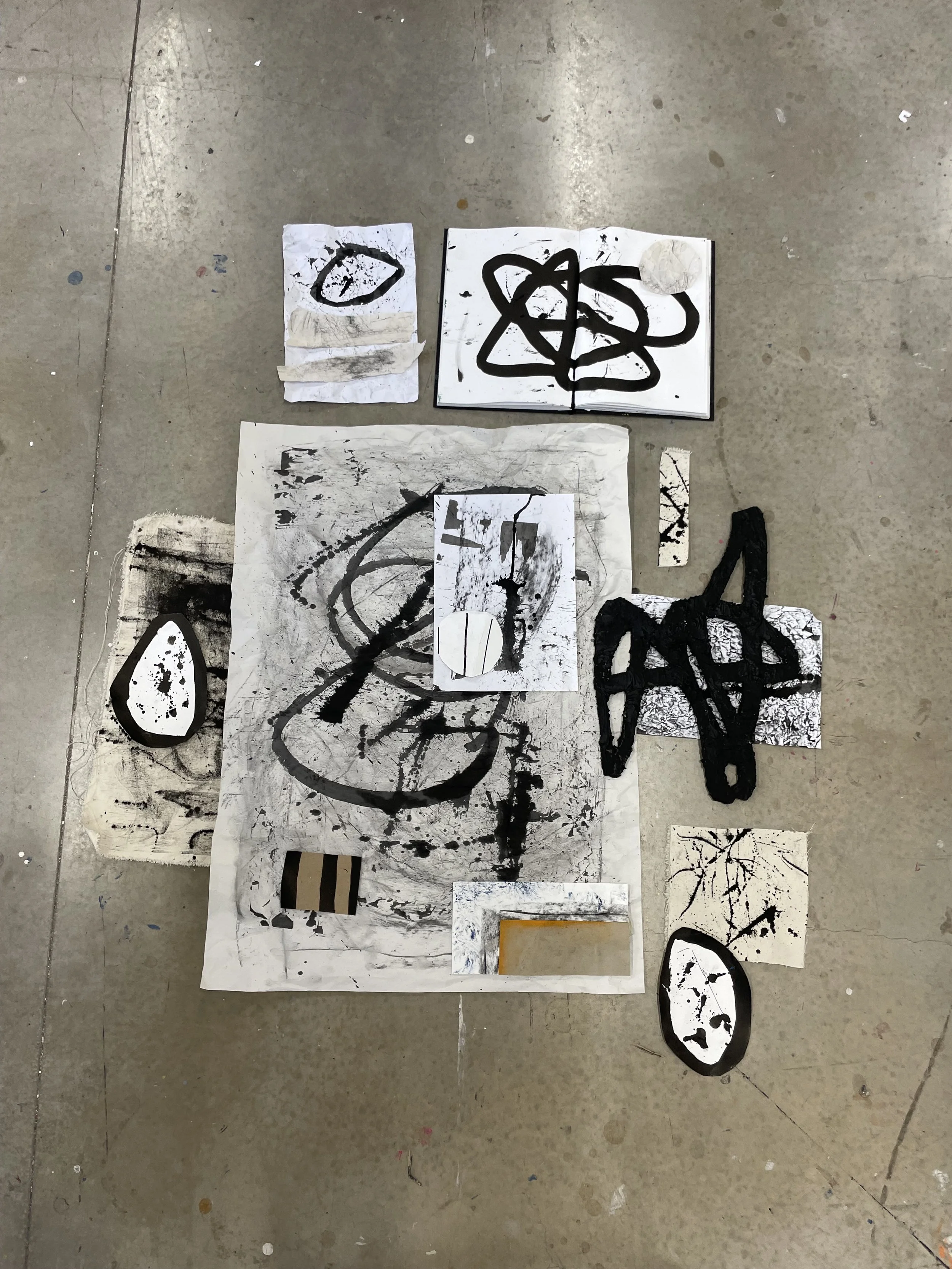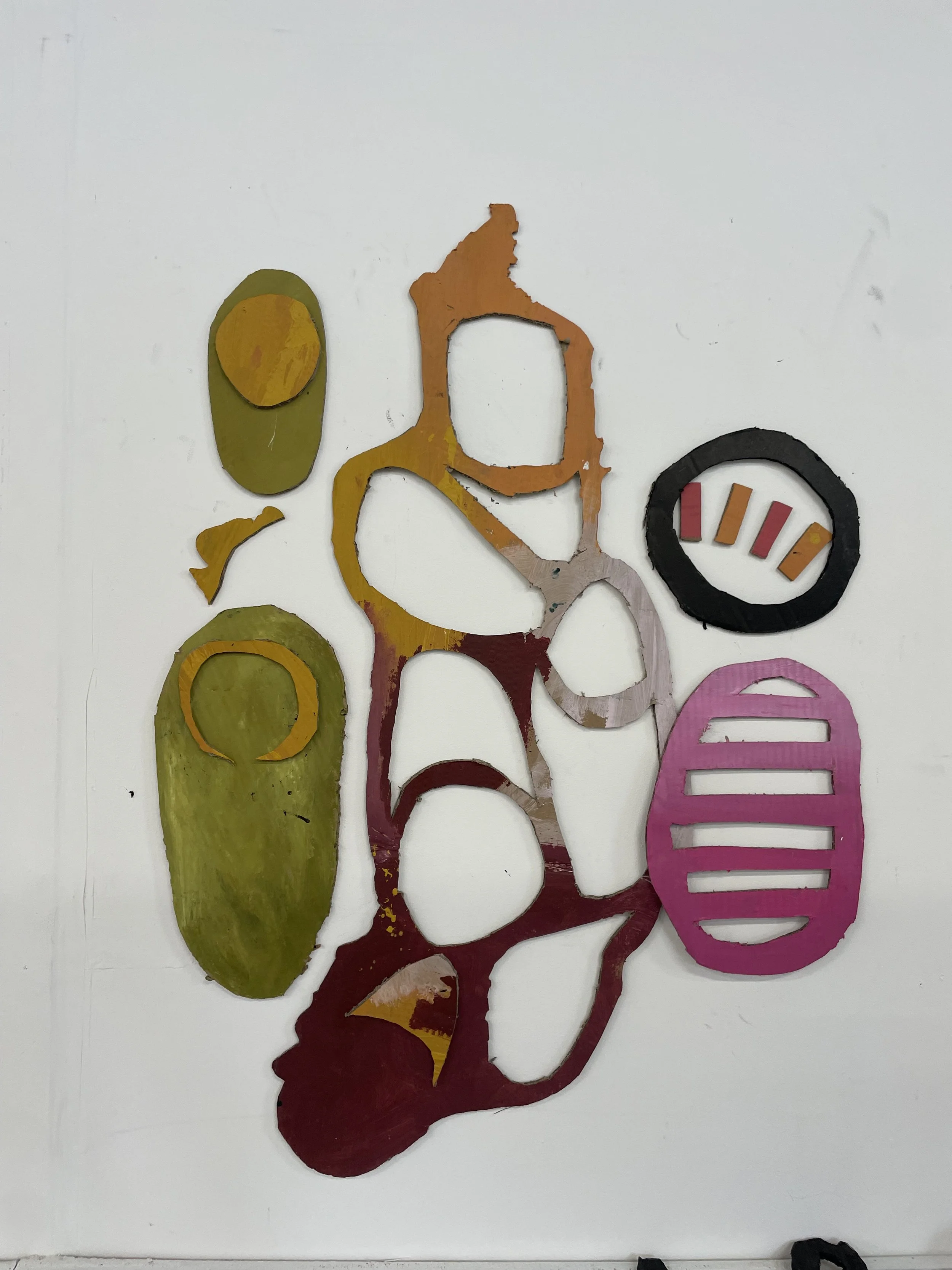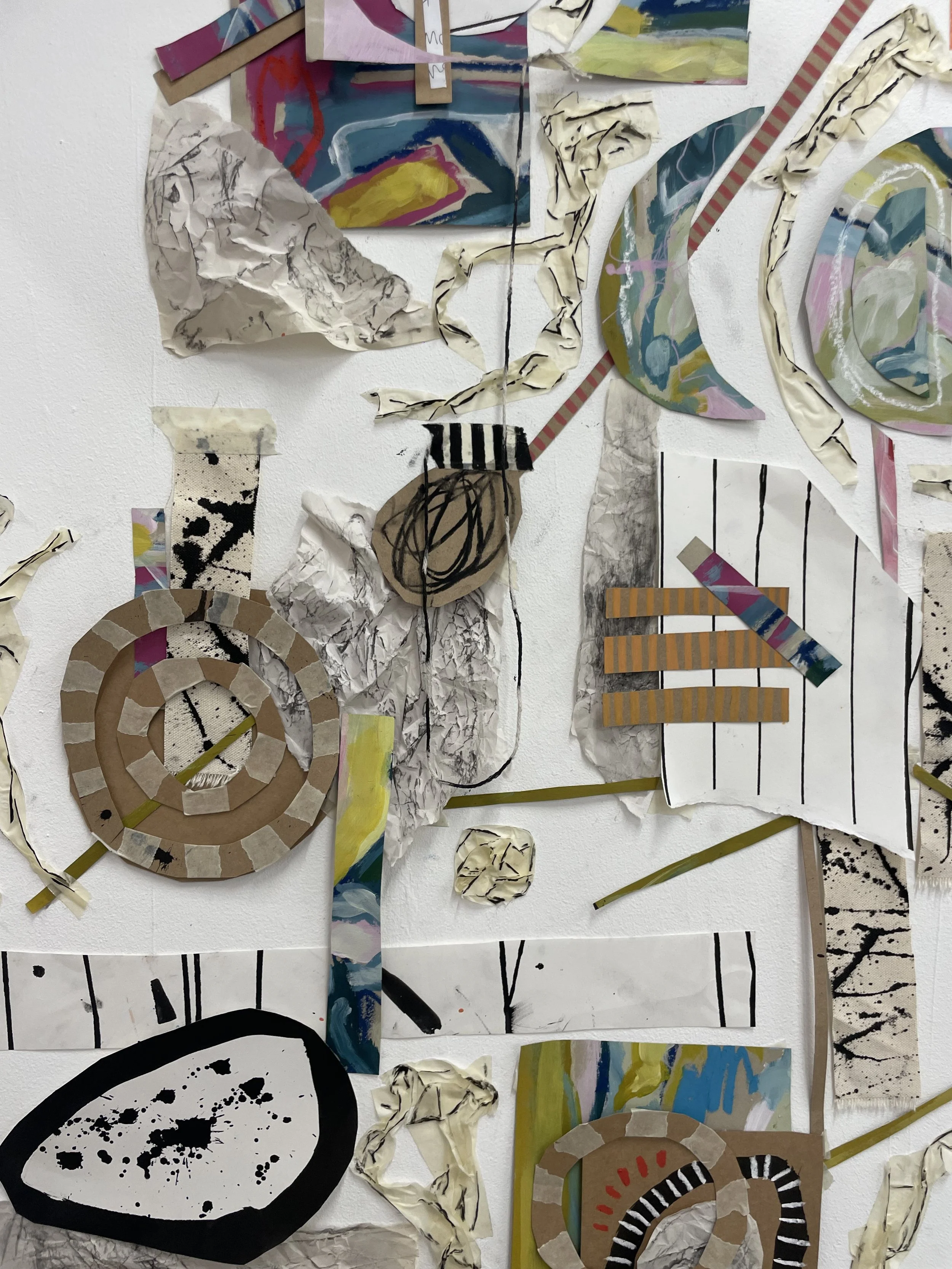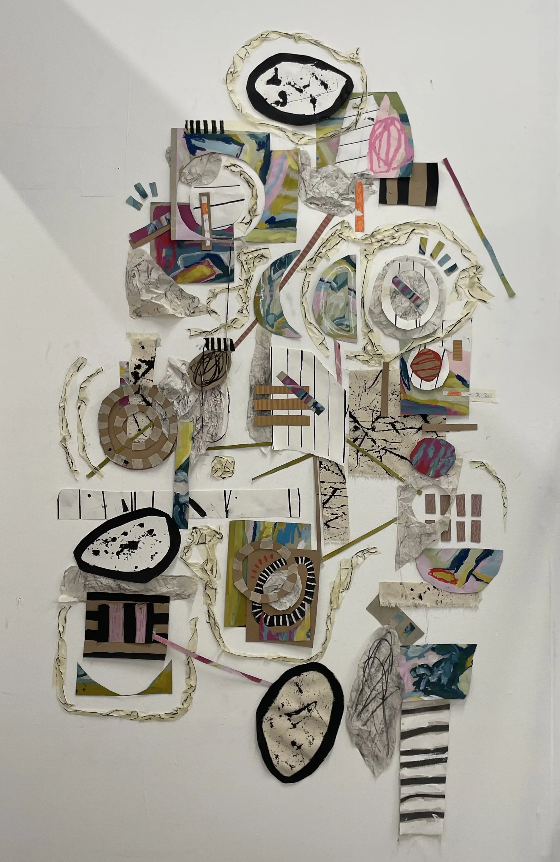 This work emerged as a response to crit feedback around the nature of my studio space its energy, its restlessness, its continual state of becoming. I wanted to push this further, allowing the mark to exist beyond the surface, to physically occupy space.