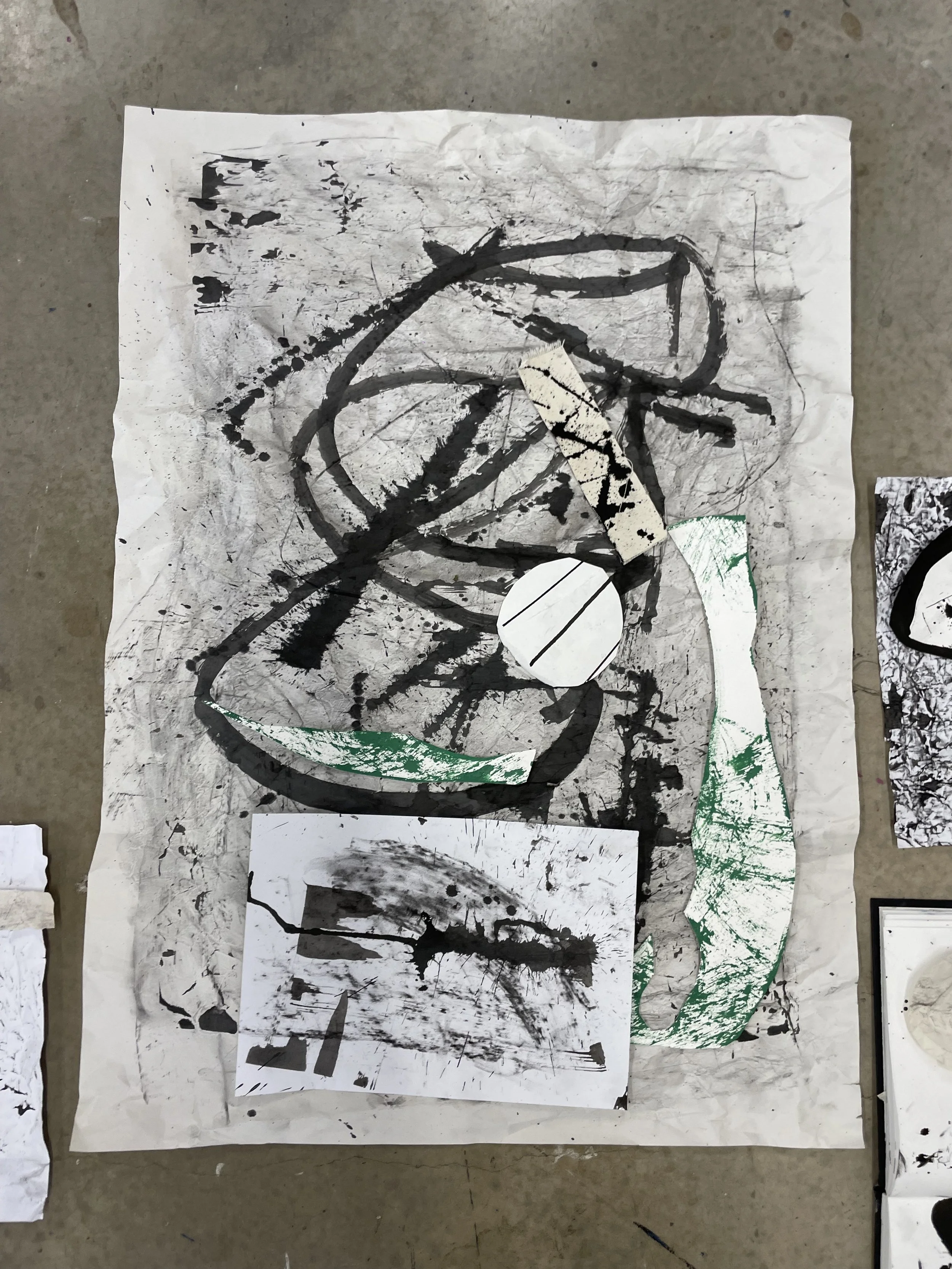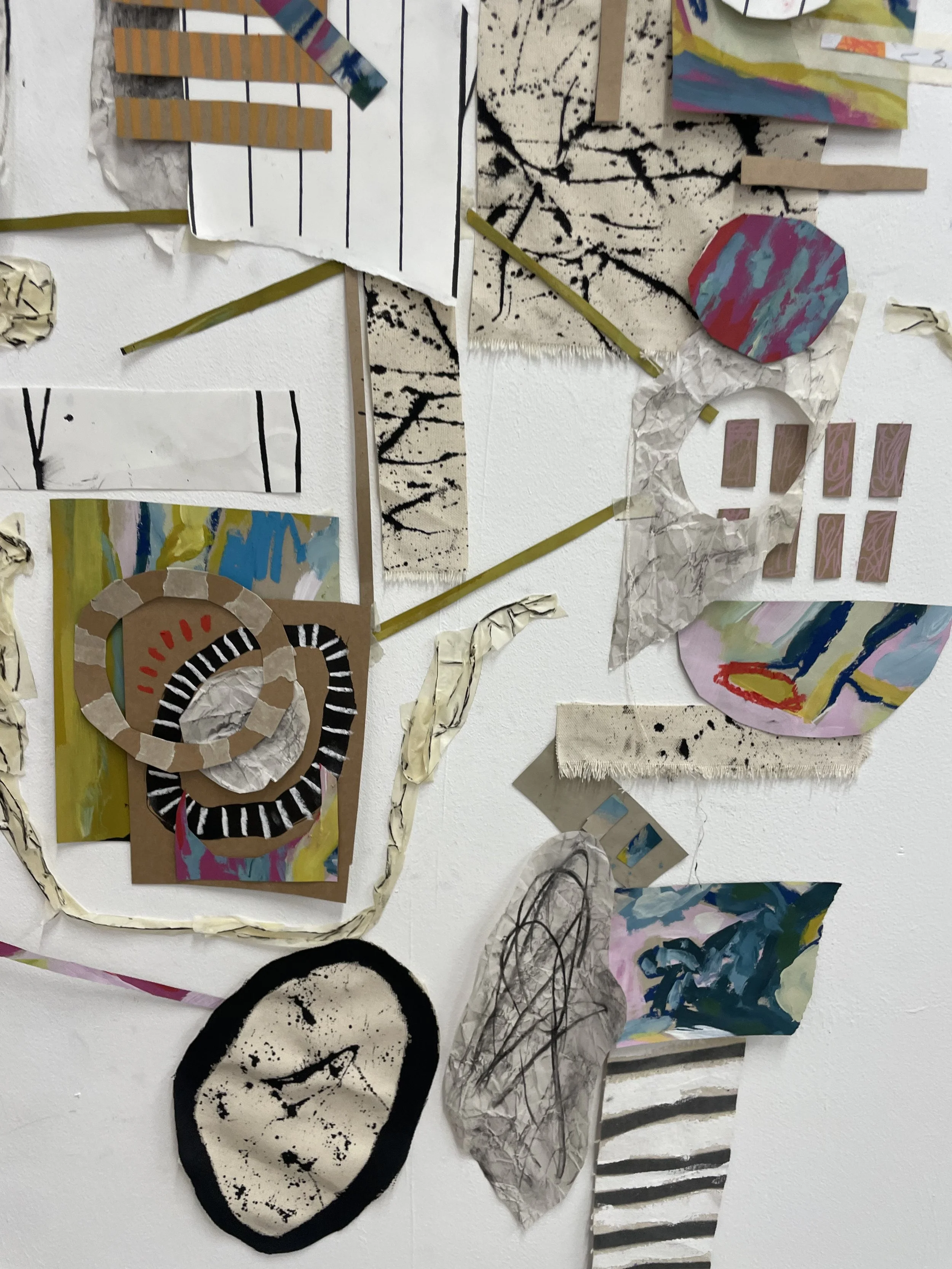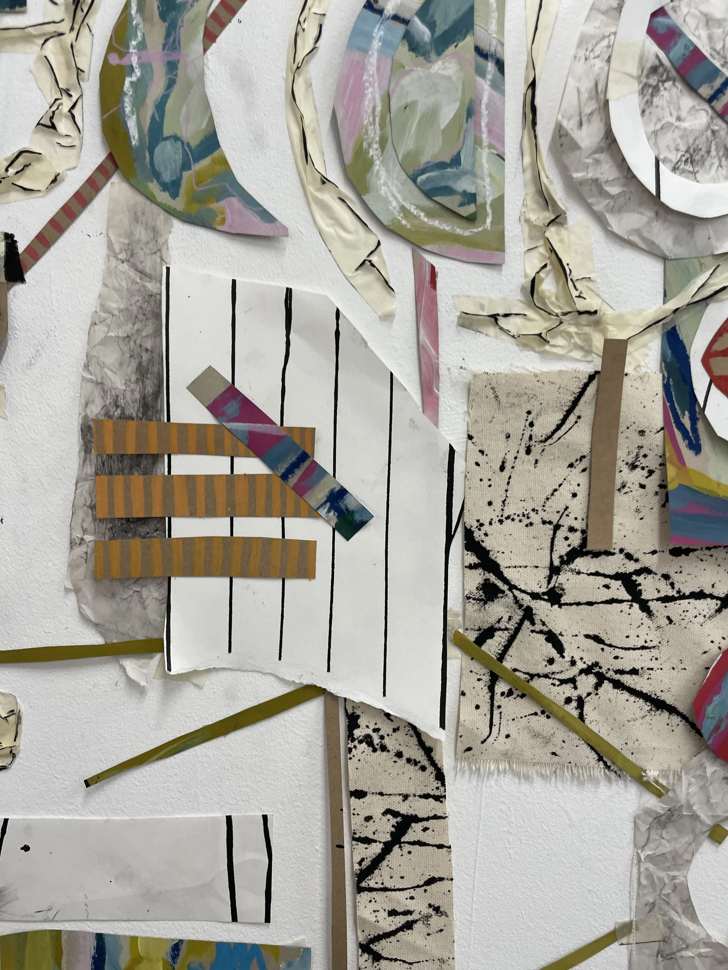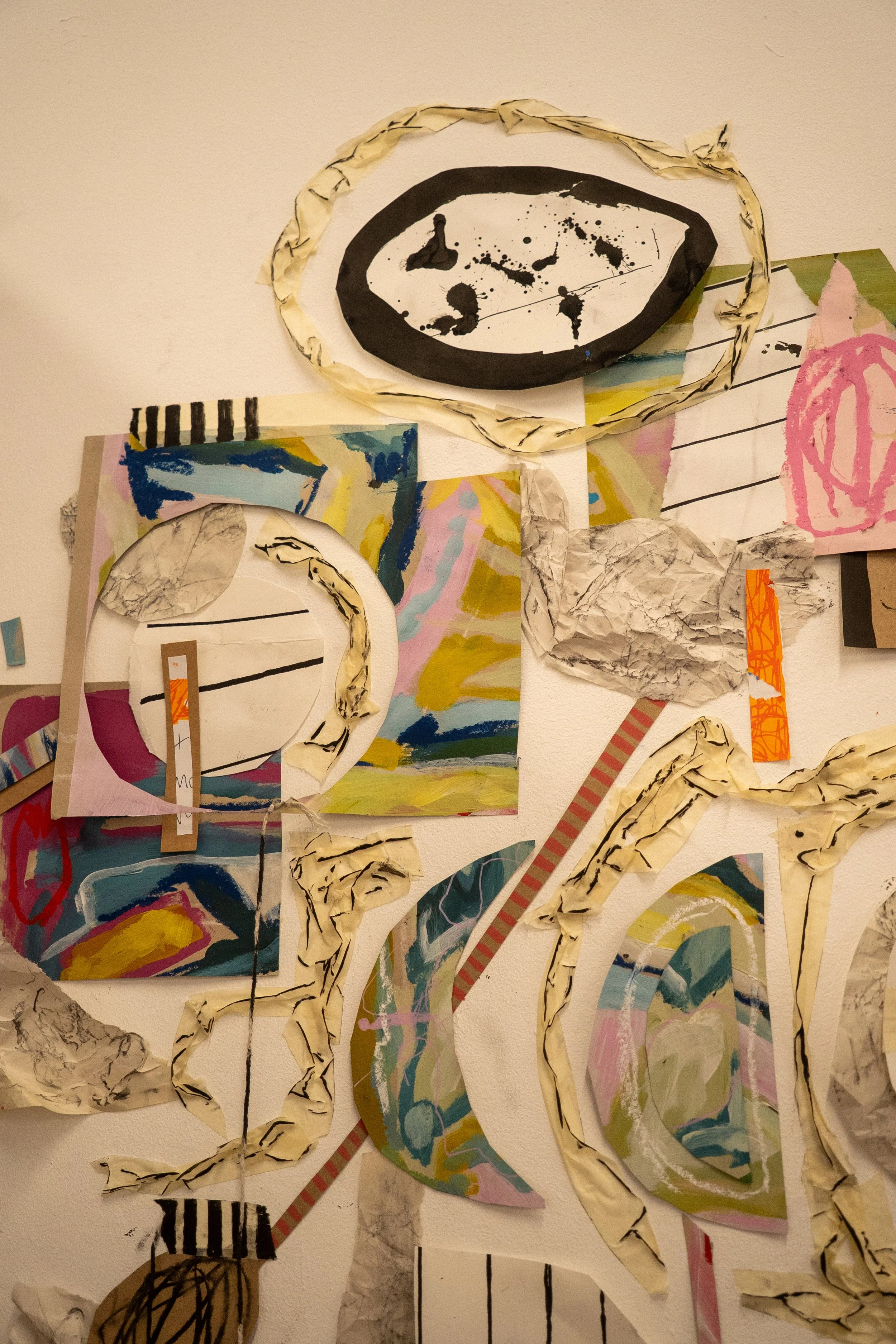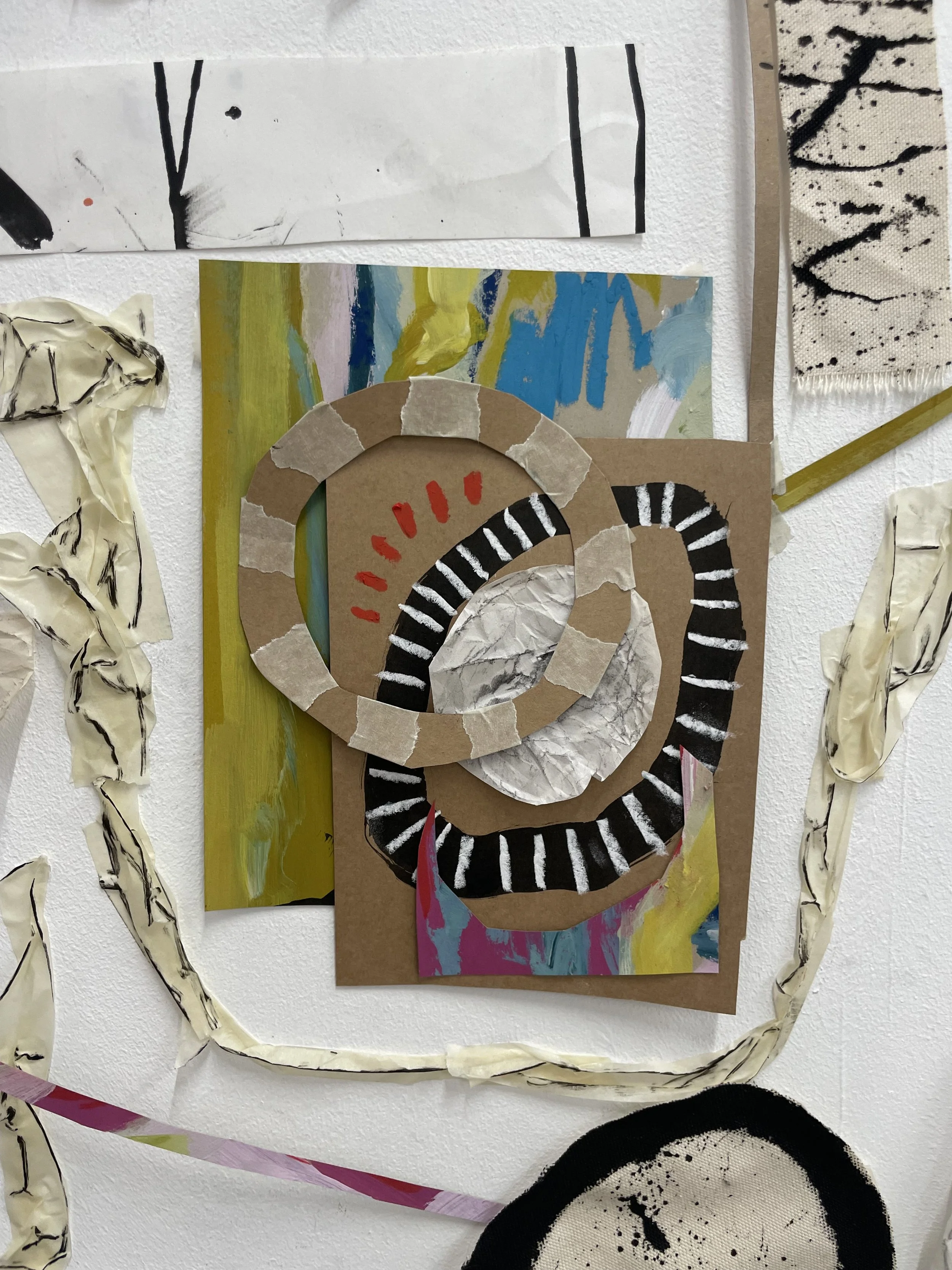 This work emerged as a response to crit feedback around the nature of my studio space its energy, its restlessness, its continual state of becoming. I wanted to push this further, allowing the mark to exist beyond the surface, to physically occupy space.