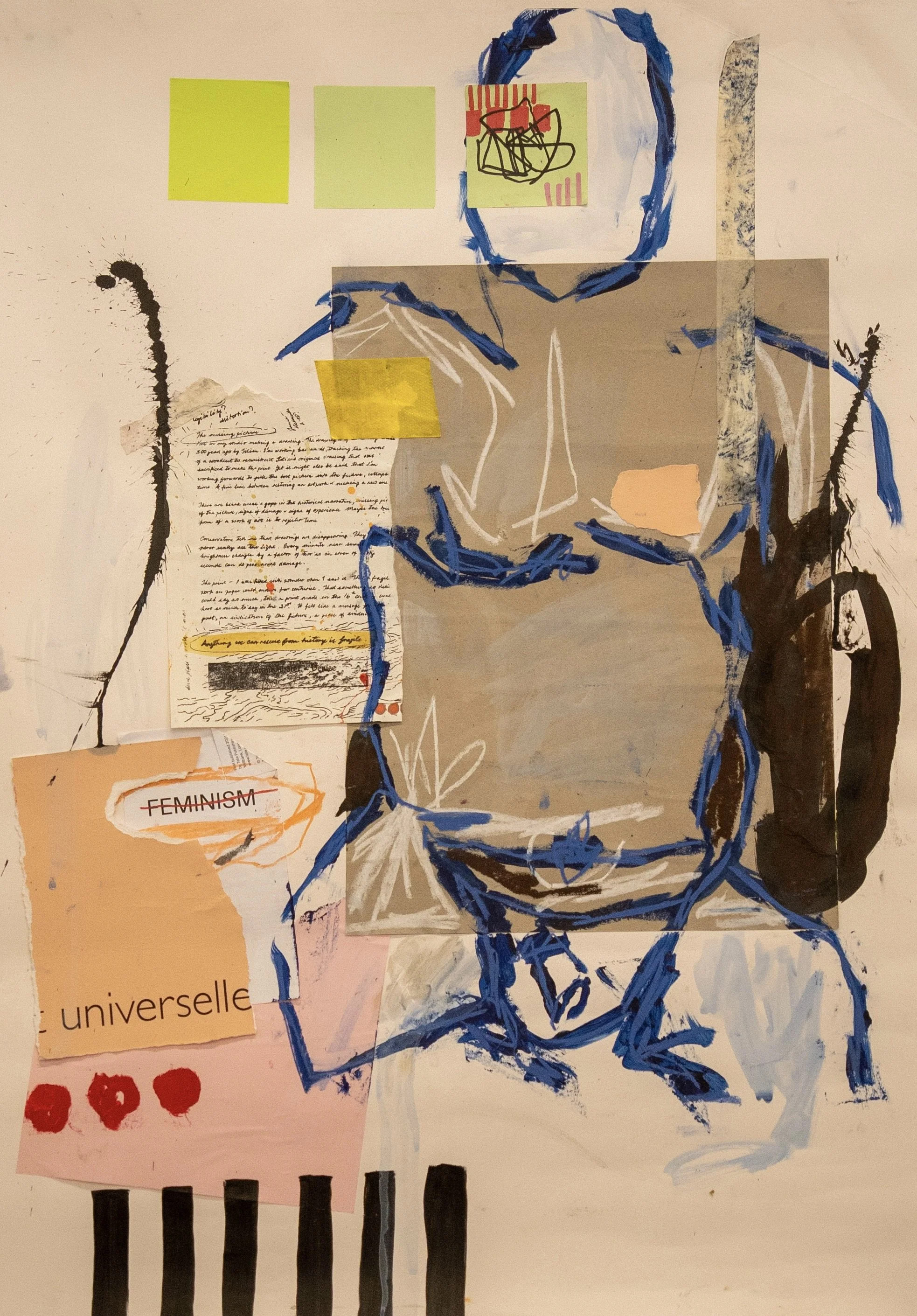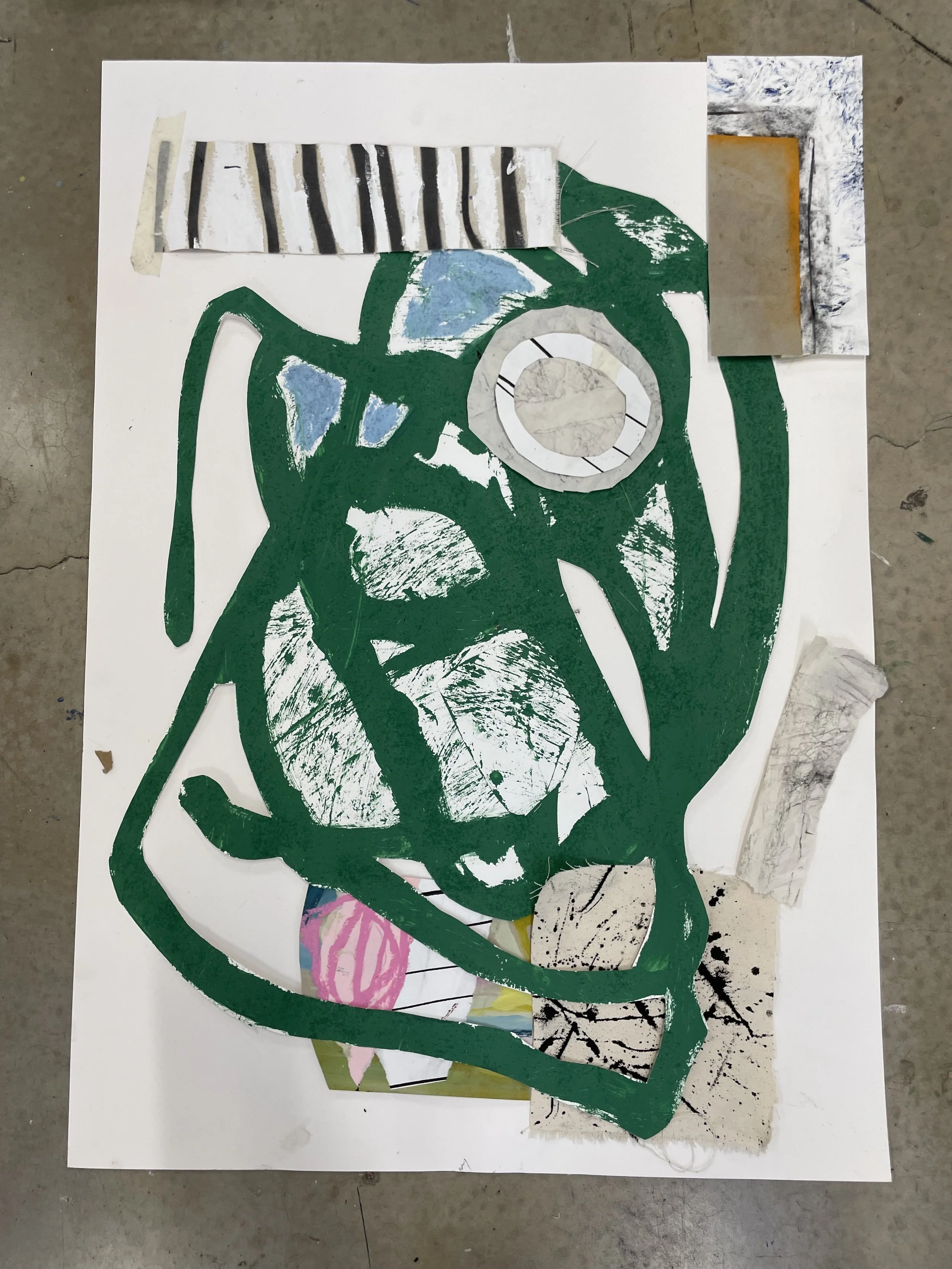 This piece emerged from a timed exercise a self-imposed challenge to work instinctively under pressure. Using discarded fragments from previous collages, remnants of paintings, and string, I built layers that felt both chaotic and intentional. The act of cutting up and reassembling my own work became a dialogue with the subconscious — a way of exploring what surfaces when instinct overrides control.