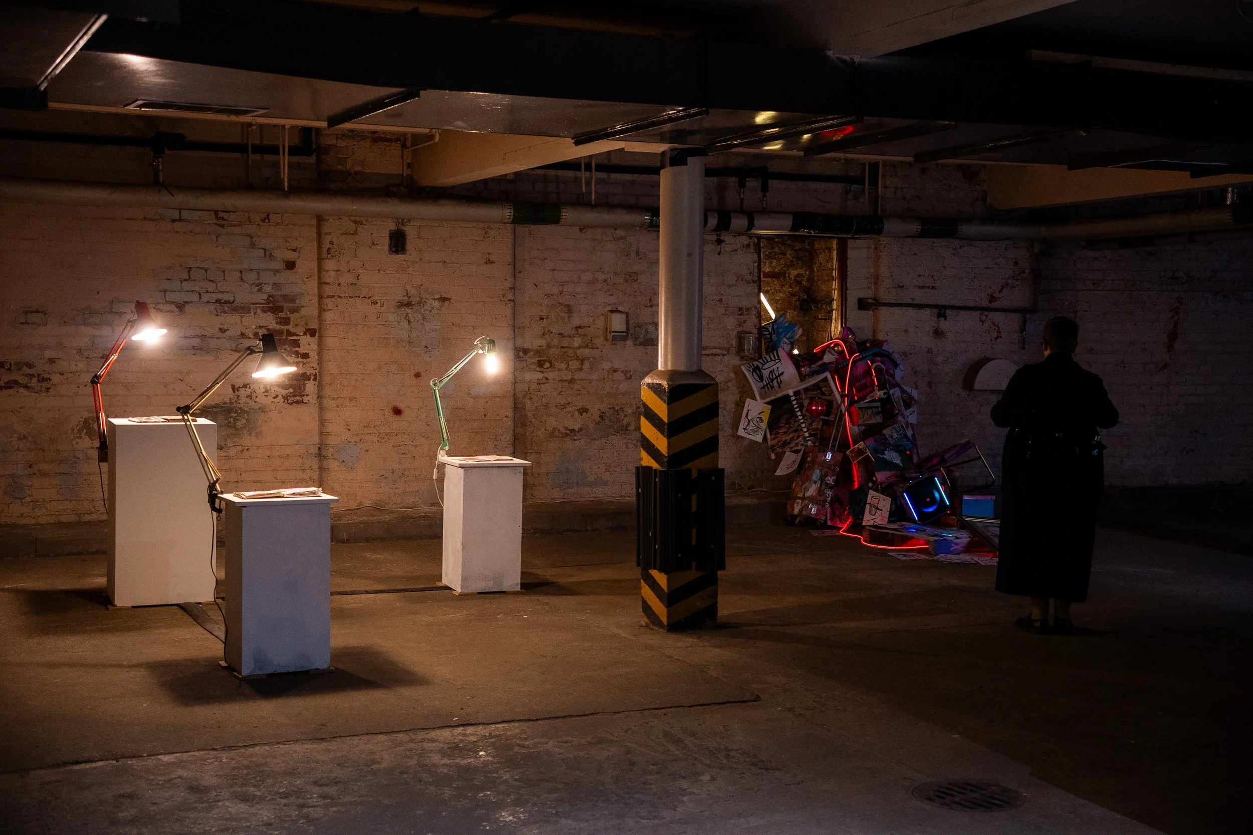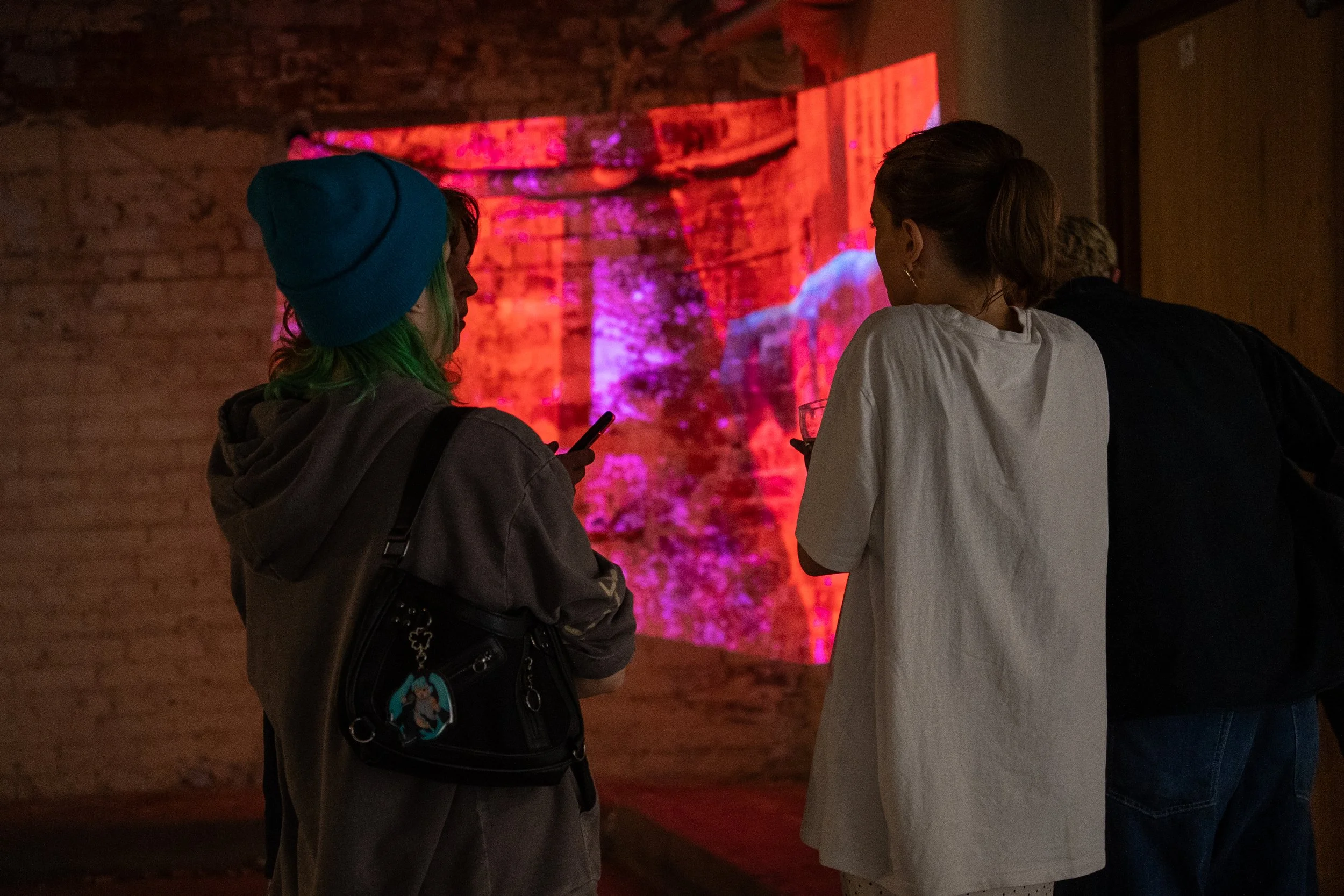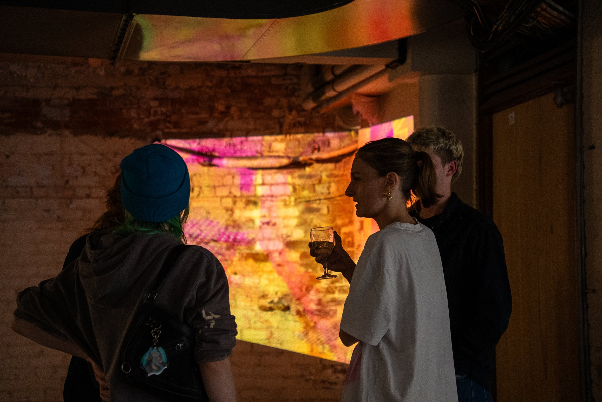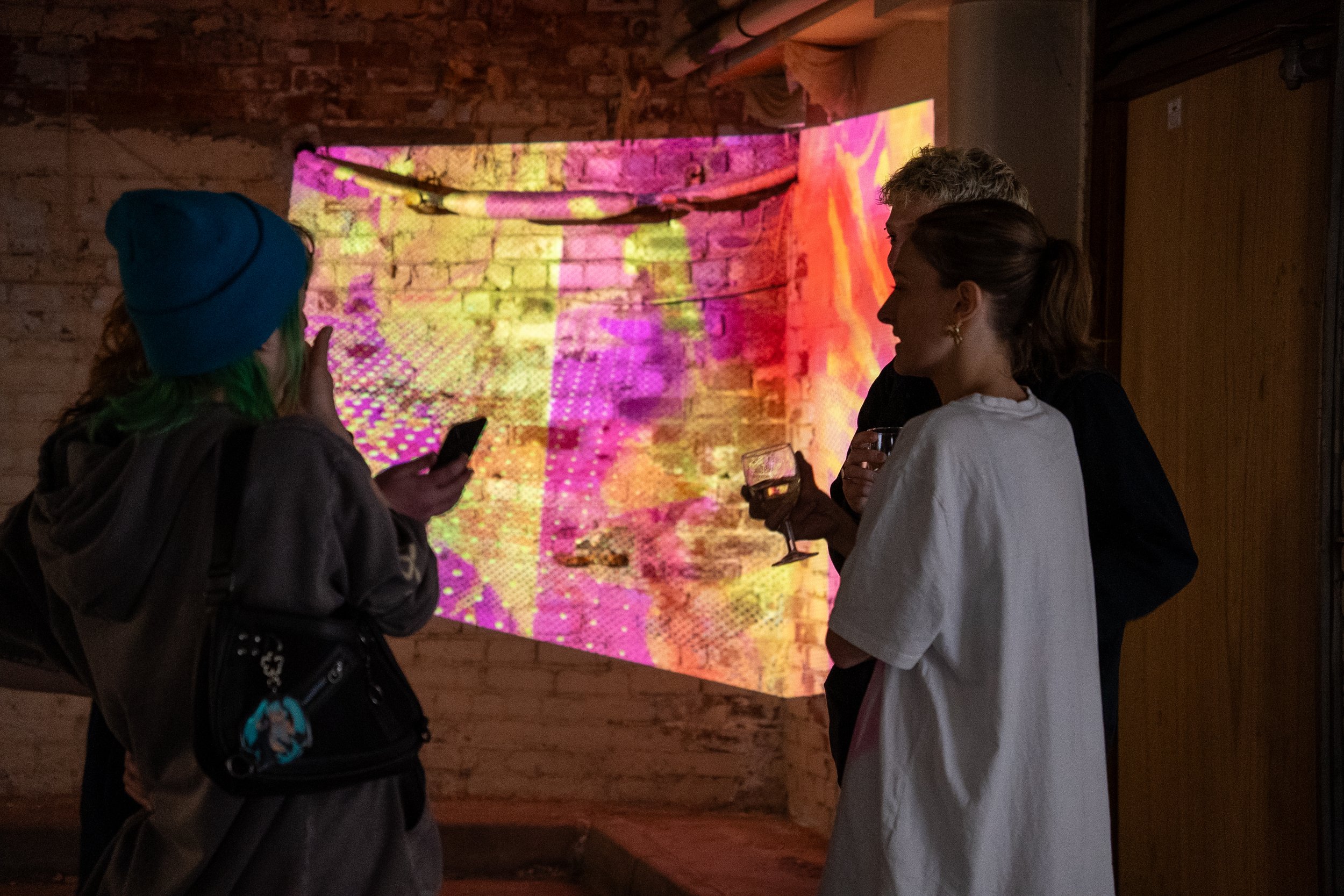 Digital projections added a further dimension to the show, casting vibrant, shifting patterns across the gallery’s raw brick walls. This interplay between analogue and digital processes reflected the exhibition’s central idea: that potential lies in experimentation, in embracing unpredictability, and in allowing process itself to shape meaning.